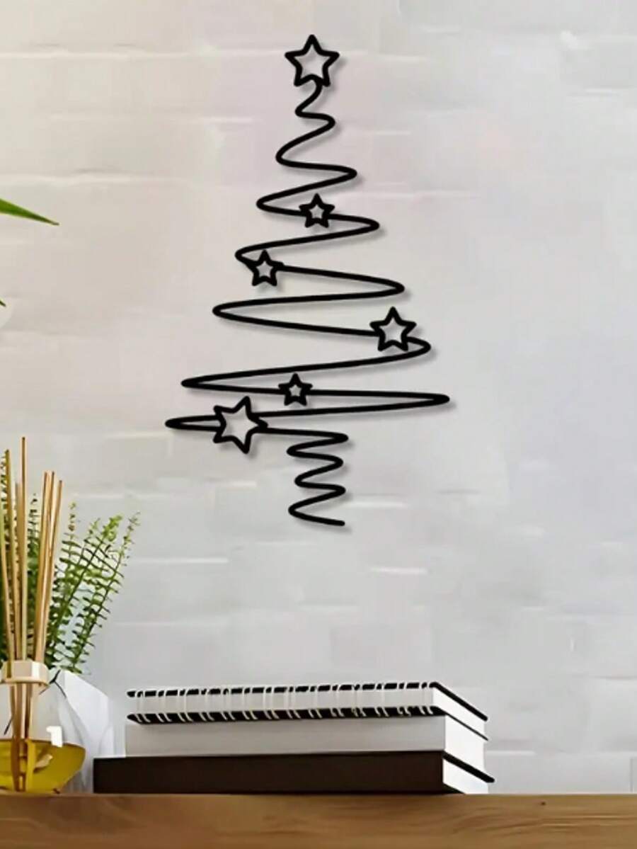 [Albero di Natale in metallo] Elegante albero di Natale in metallo nero da parete | Decorazione natalizia non elettrica per interni ed esterni, perfetta per soggiorno, cortile o giardino
