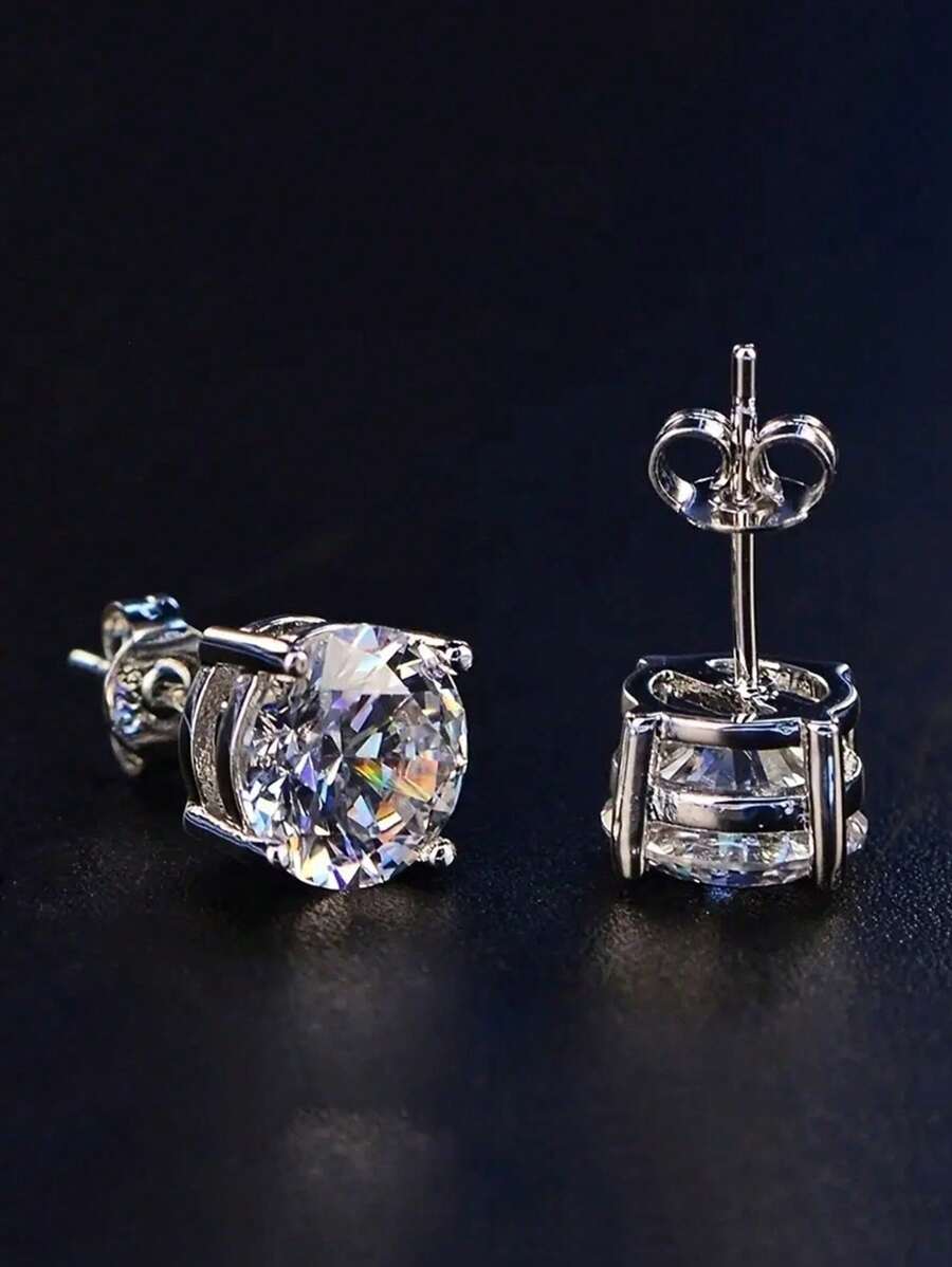 1 Paio di orecchini eleganti a perno placcati in oro con gemme quadrate, design classico ed elegante, adatti per uomo, con pietre di zirconia cubica tonde e lucide da 4/5/6/7/8/9/10mm