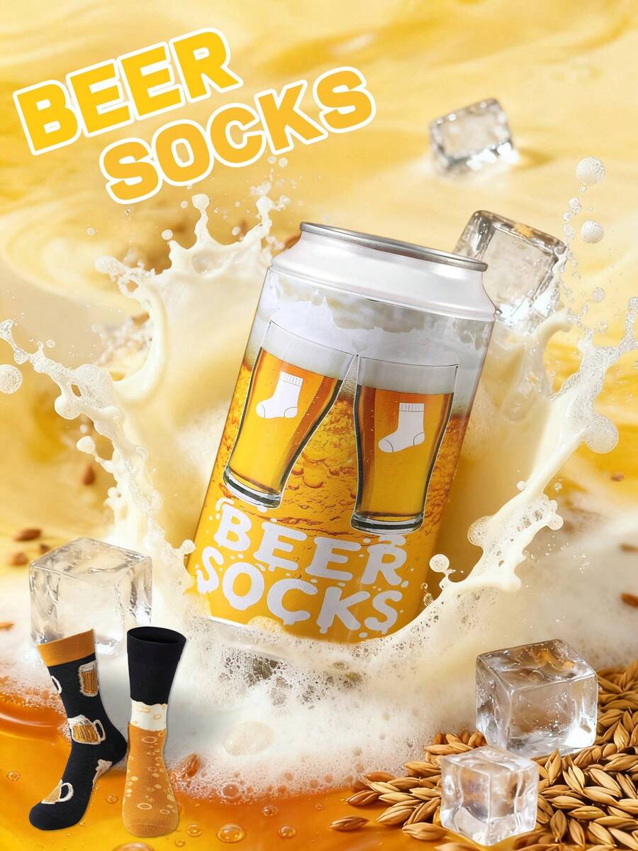 1 Paio Di Calzini Multicolore Fino Alla Caviglia, Confezione Regalo Unisex Per Coppie, Calzini Novità Morbidi A Tema Birra, Design Creativo Ispirato Al Cibo, Comodi E Versatili, Adatti Per Compleanni, San Valentino, Pasqua, Ramadan, Appuntamenti, Riunioni Familiari, Feste, Vacanze, Indossabili Casual Unici E Di Moda