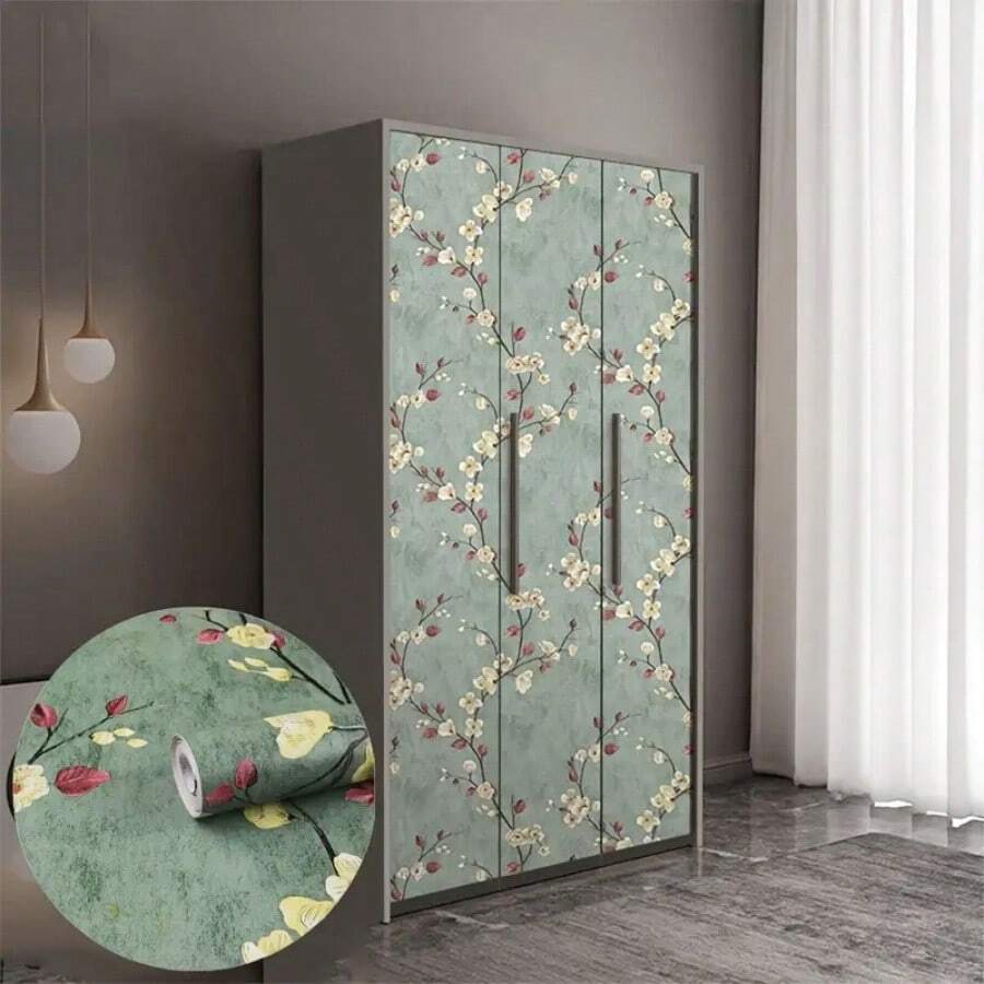 1 rotolo di carta da parati floreale verde e gialla, in PVC impermeabile e rimovibile, autoadesiva, dimensioni 45x500/300/100 cm, adatta per decorare pareti di soggiorno, camera da letto, dormitorio, mobili, tavoli, armadi, facile da installare, idea regalo per compleanni, lauree, decorazione casa, camera da letto, bagno