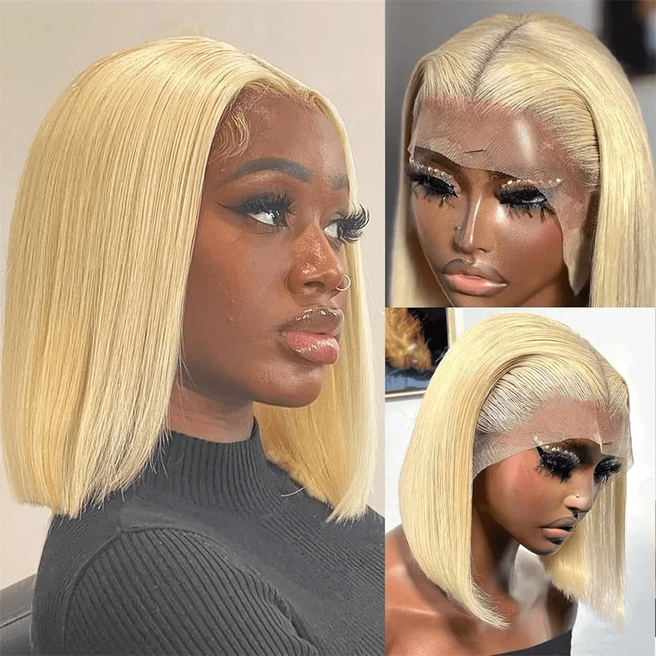 CEXXY Parrucca Bob Brasiliana Liscia Bionda 613 13x4 Parrucche di Capelli Umani con Pizzo Frontale per Donne Parrucca Bob Corta Liscia 13x4 Parrucca Bob Glueless Pre-pizzicata con Capelli del Bambino Parrucca Bob Liscia Frontale in Pizzo Trasparente HD Parrucca Brasiliana di Capelli Umani dall'Aspetto Naturale Leggera Adatta ai Principianti Facile Installazione da Indossare Tutti i Giorni Parrucca per Feste, Matrimoni e Lavoro Parrucca Bob Liscia Morbida Parrucca di Capelli Umani Veri per Donne