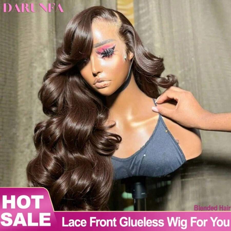 Parrucca frontale in pizzo a onde del corpo 13x4, capelli misti, parrucca lunga a onde del corpo, colore naturale, chiusura frontale in pizzo HD 13x4, parrucca in capelli vergini brasiliani di colore marrone per donne