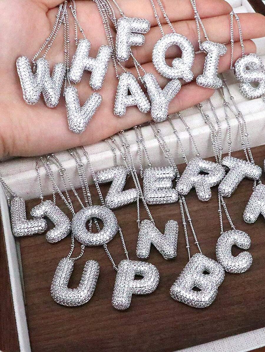 1 Pezzo Nuova Collana Con Ciondolo Lettera A-z 26 Di Lusso In Micropavé Cz, Collana Con Ciondolo Iniziale Del Nome In Platino Elettroplaccato Per Uomo E Donna