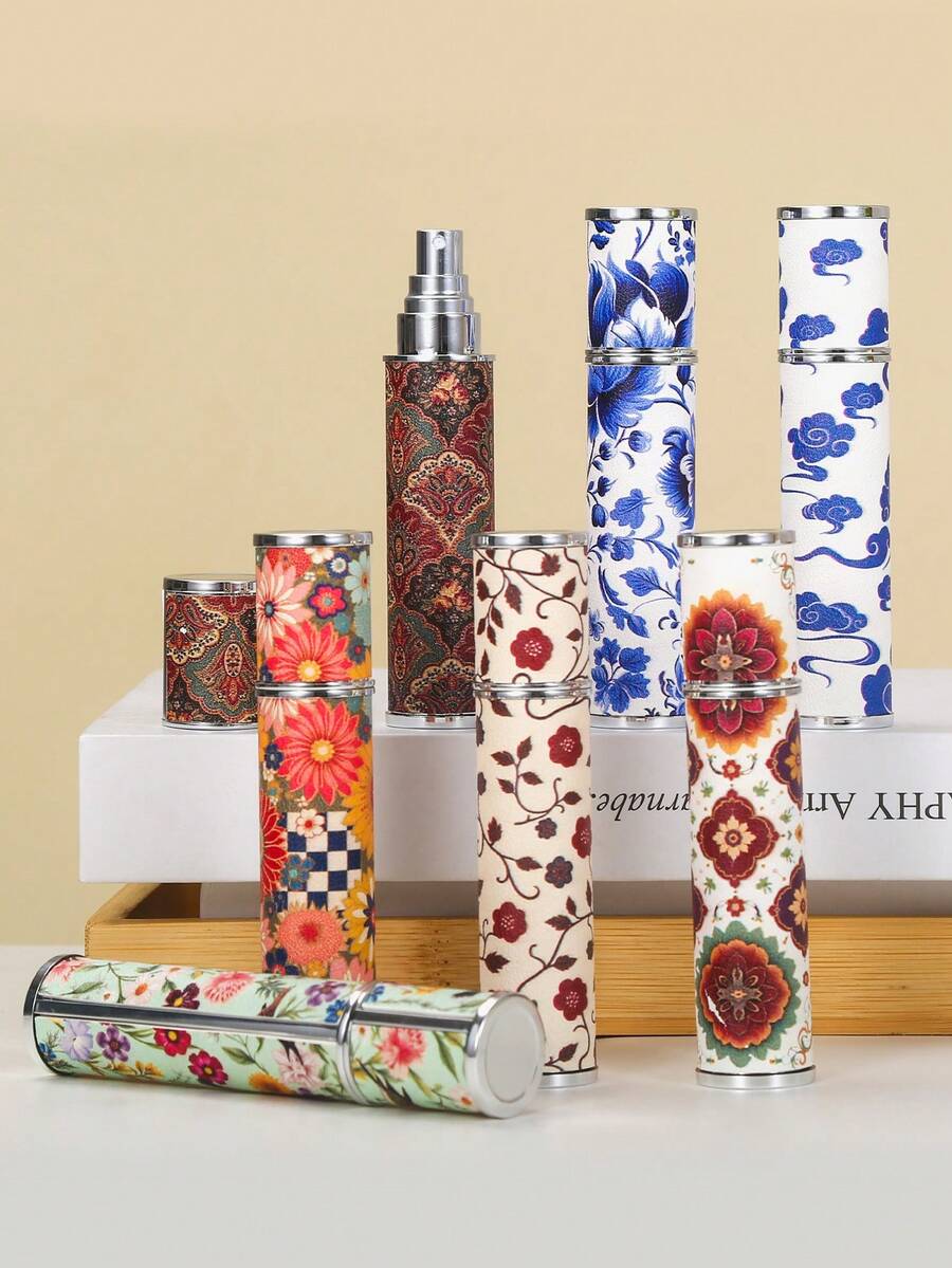 1 pezzo Bottiglia di profumo vintage in pelle da 10ml con stampa floreale e totem, di alta qualità, flacone spray portatile per viaggi