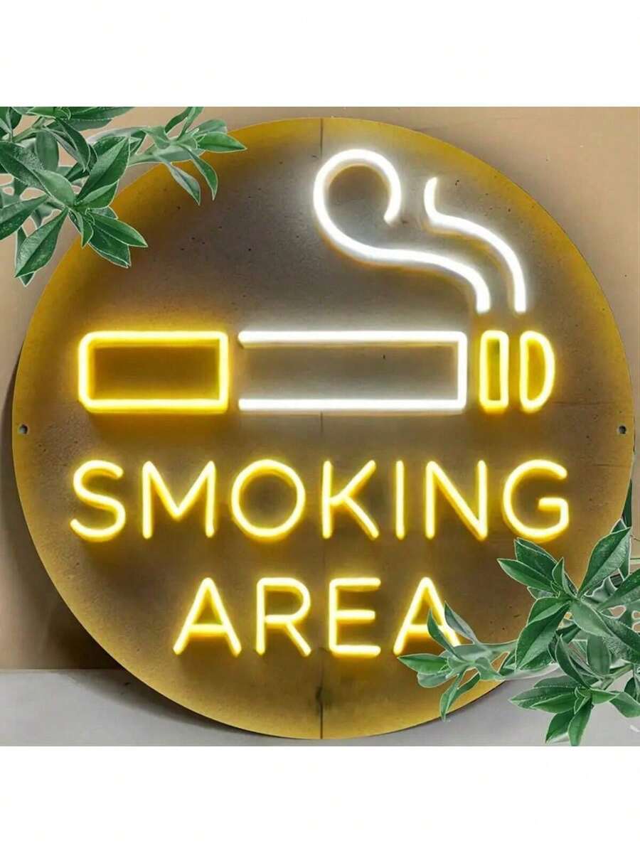 1 pezzo Cartello rotondo in ferro da 20x20cm (8x8 pollici) per area fumatori, con font vivace, non illuminato, in materiale ferroso, adatto per casa, bar, caffè
