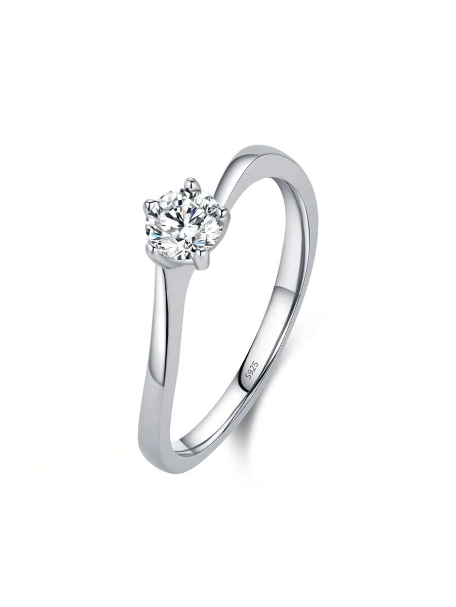 1 pezzo Anello in argento sterling 925 rotondo e brillante con zirconi, gioiello da donna per fidanzamento, anniversario, accessorio di moda, regalo