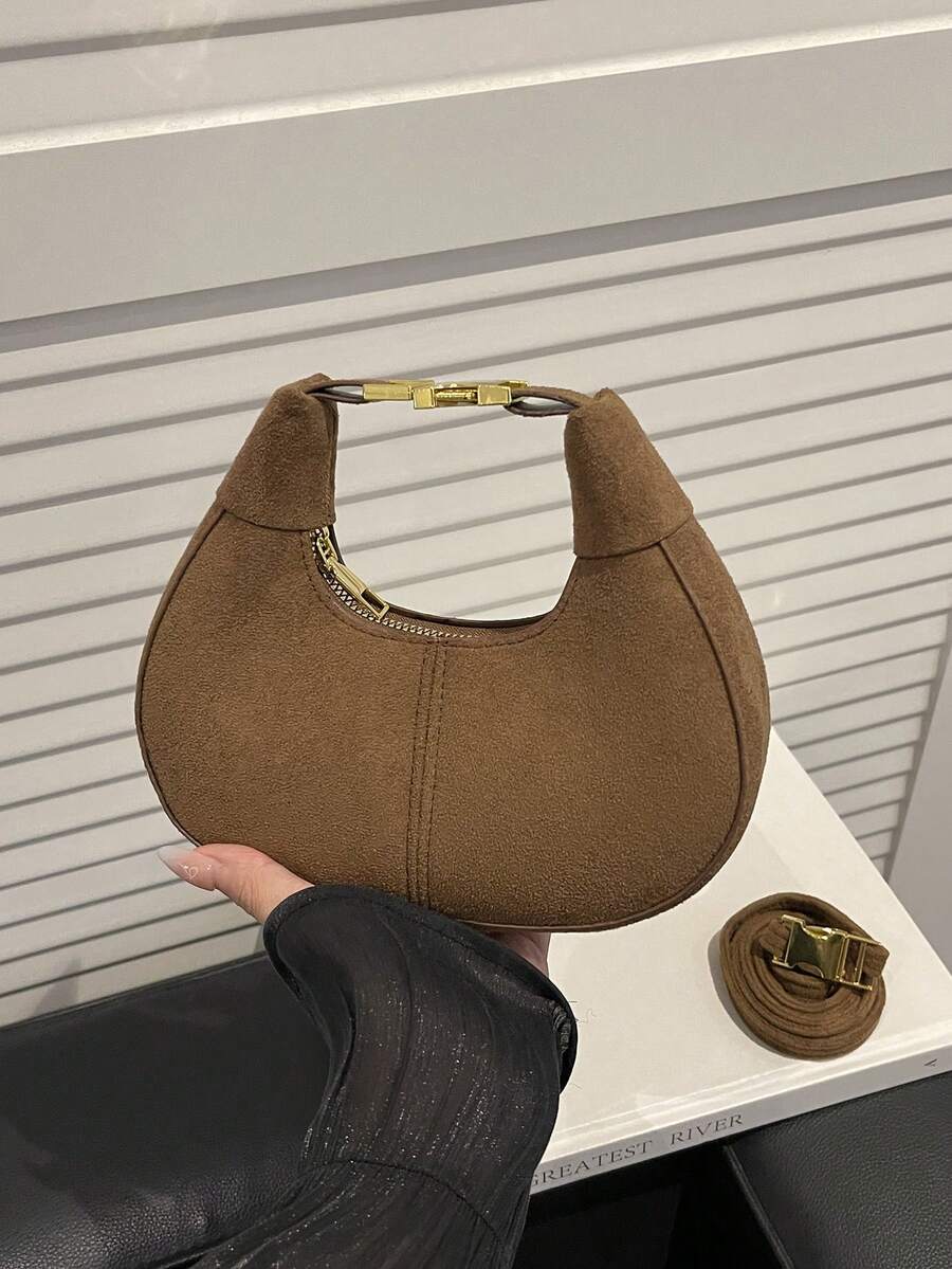 1 pezzo Nuova borsa a mezzaluna in finta pelle scamosciata per autunno/inverno, alla moda, adatta per pendolarismo, amanti delle feste, stile vintage, design di nicchia