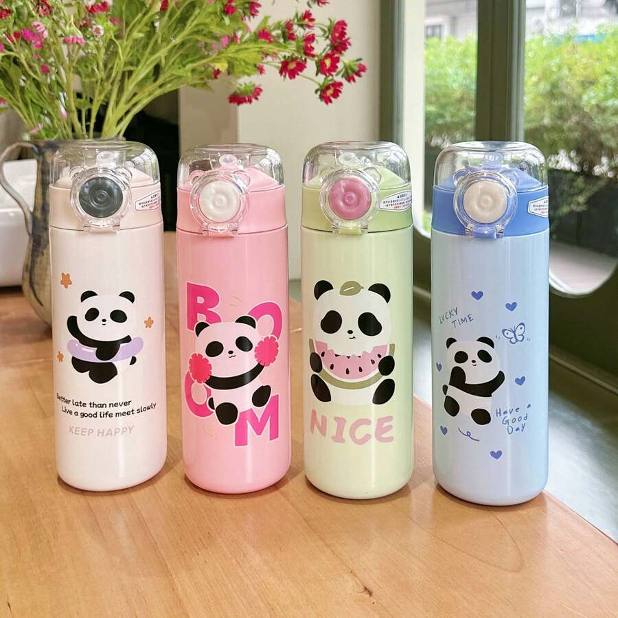 1 pezzo Tazza con cannuccia con simpatico cucciolo cartoni animati, portatile in acciaio inossidabile per uso scolastico