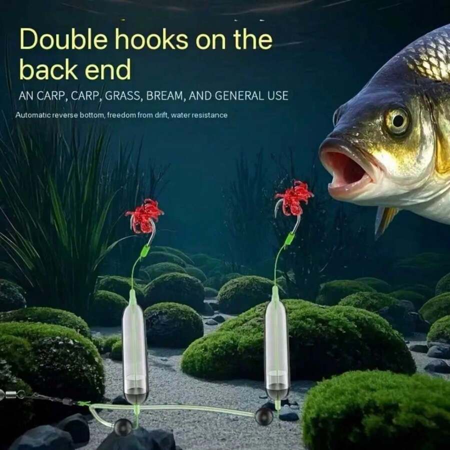 1 pezzo Set da pesca alla carpa stile europeo Esen, con ganci doppi anti-inceppamento con sollevamento automatico, design del fondo anti-perdite - ganci di colori misti, materiale resistente alla corrosione di grado professionale per pescatori
