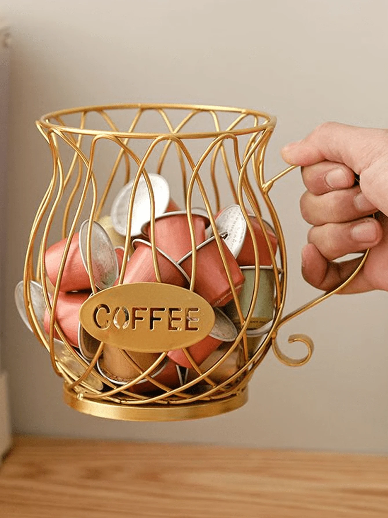 1 pezzo Cestino portacapsule da caffè in oro - Acciaio inossidabile, contiene 30 capsule, compatibile con /, adatto anche per conservare snack, frutta, giocattoli; adatto come pezzo decorativo per scrivania, cucina, camera da letto, regalo e decorazione per il nuovo anno