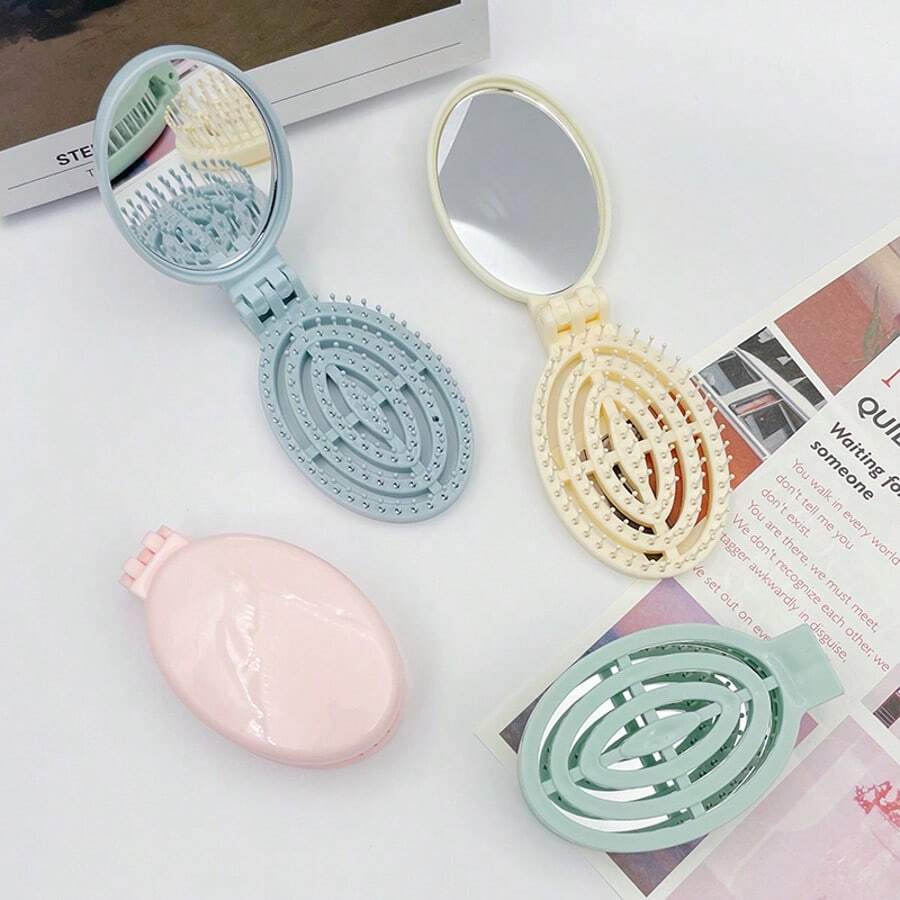 2 in 1 Specchio Pieghevole e Pettine, Pettine Carino per Studenti, Pettine Portatile per Viaggio e Uso Domestico