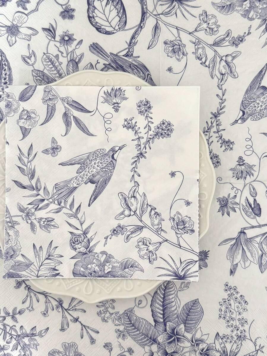 20/40 pezzi Tovaglioli monouso vintage con stampa floreale blu e uccelli, decorazioni per matrimoni, 3 strati spessi, 33x33cm, forniture per ristoranti e hotel, adatti per San Valentino, matrimoni, compleanni, anniversari, decorazioni per feste, forniture per feste