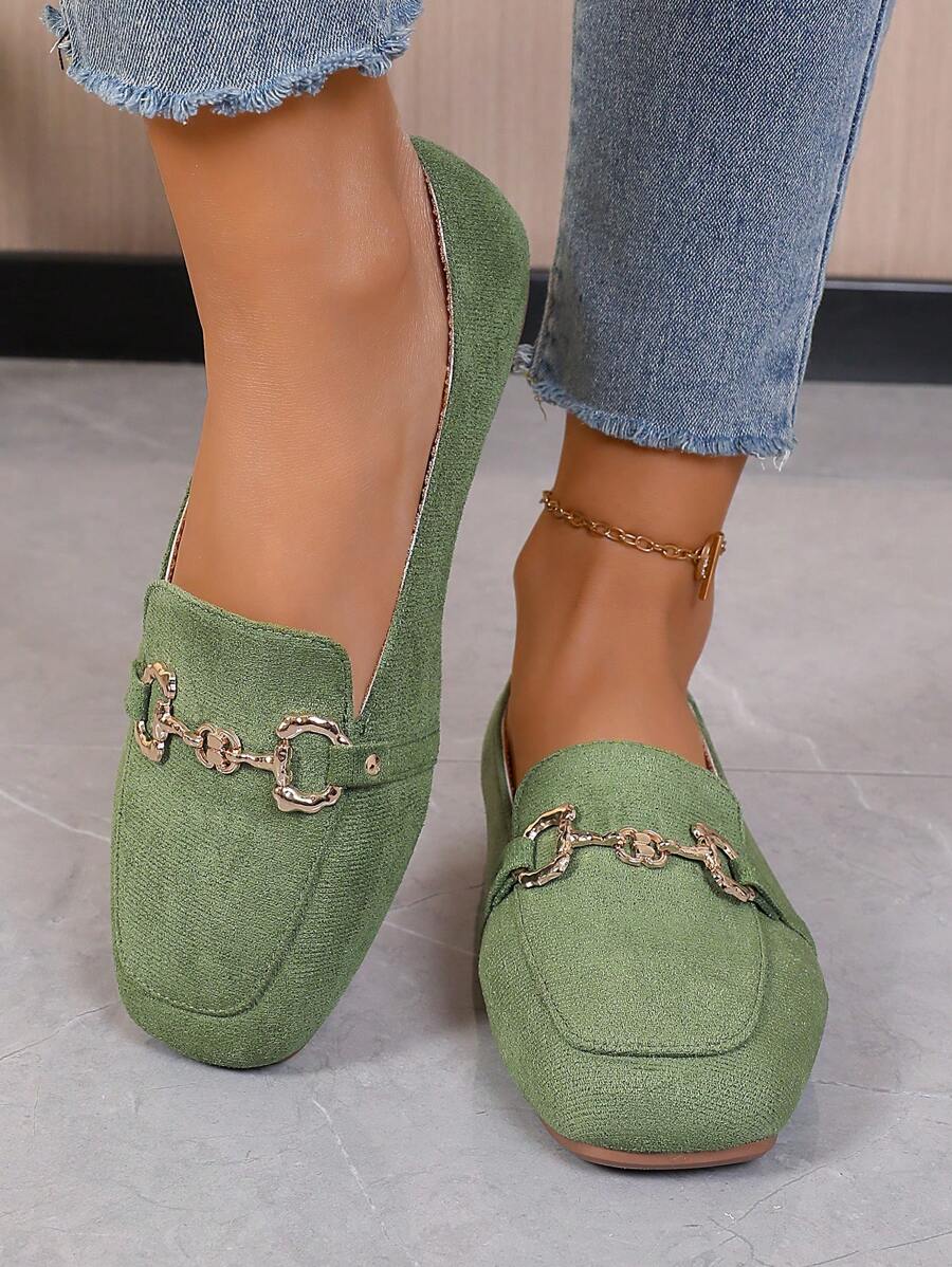 2025 Nuovo Stile Donne Mocassini Punta Quadrata, Moda Interno/Esterno Slip-On Flat Con Fibbia Decorativa, Tutte Le Stagioni Leggero E Antiscivolo Scarpe Casual Comode Flat
