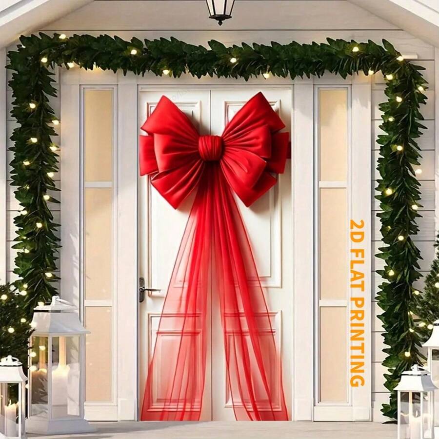 2 Fiocco rosso elegante piatto per porta - Decorazione in poliestere versatile e lavabile per matrimoni, compleanni, inaugurazioni - Ideale per portico e ingresso, ottimo per Natale