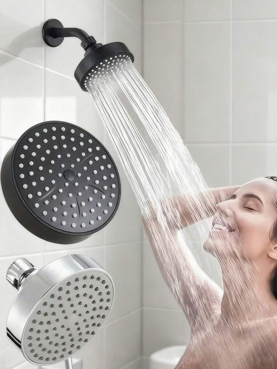 2 pezzi/set Soffione doccia rotondo montato a parete ad alta pressione, soffione doccia ad alta pressione con ugelli in silicone, soffione doccia in plastica durevole con supporto a parete regolabile, design a risparmio idrico e anti-schizzi, stile minimalista moderno, adatto per bagni di casa e hotel, bagni moderni, bagni alla moda e bagni di camper, accessori da bagno moderni montati a parete, regalo ideale per famiglia e amici