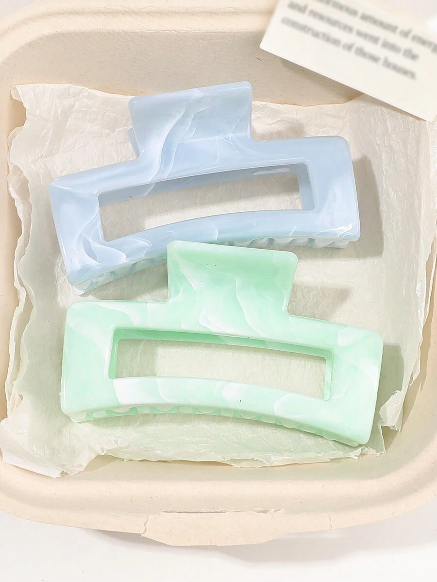 2 pezzi/set Fermagli per capelli in materiale PC con texture di marmo, Molletta per capelli quadrata oversize dai colori sognanti blu e verde, adatti per feste, tea festa, acconciature, accessori per capelli autunno inverno per donna per vacanze