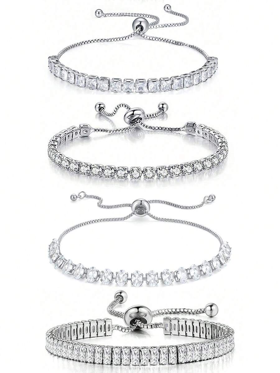 4 pezzi Braccialetto tennis regolabile con zirconia cubica geometrica, design rotondo e quadrato lucido, adatto per uso quotidiano di donne e ragazze