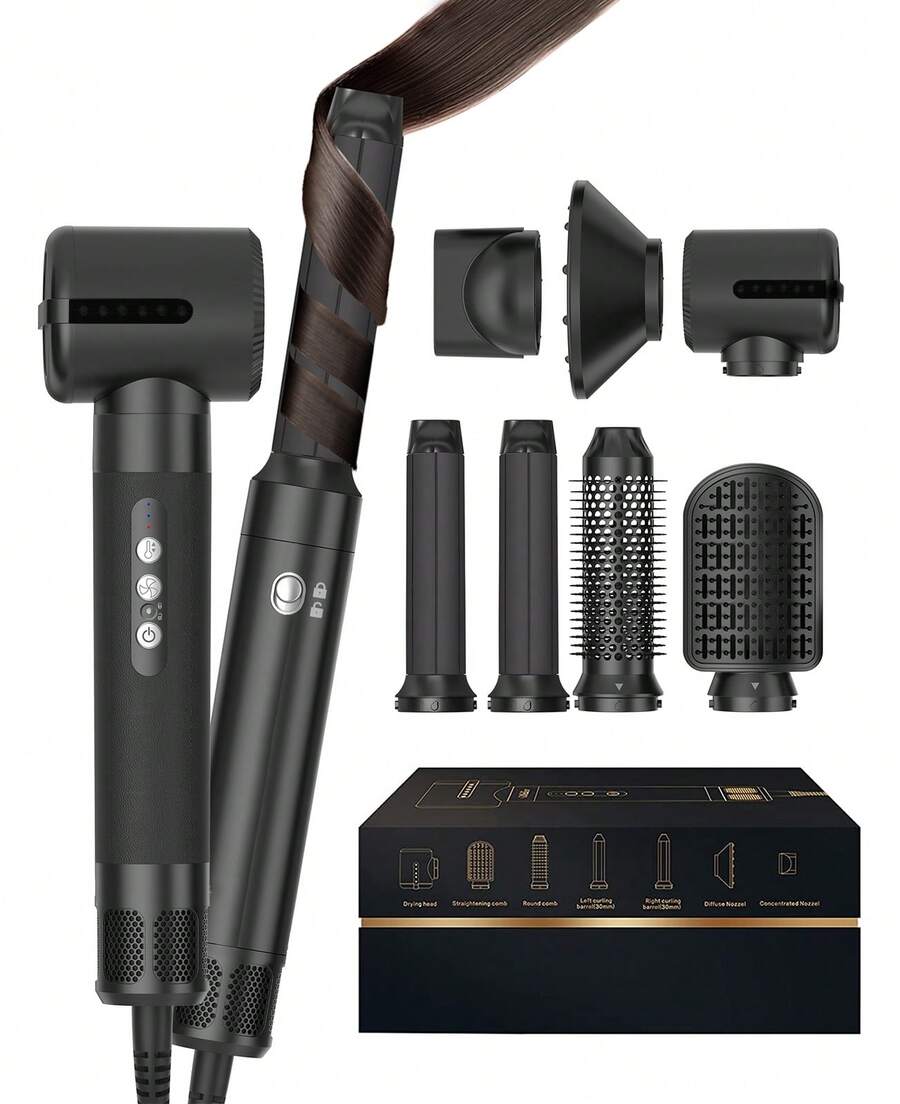 UKLISS Set da parrucchiere multifunzionale 7 in 1, asciugacapelli ionico ad alta velocità da 60.000 watt (previene efficacemente l'effetto crespo), piastra per capelli a ioni negativi, spazzola ad aria calda, ferro arricciacapelli ad aria, piastra per capelli per lo styling, volumizzante.