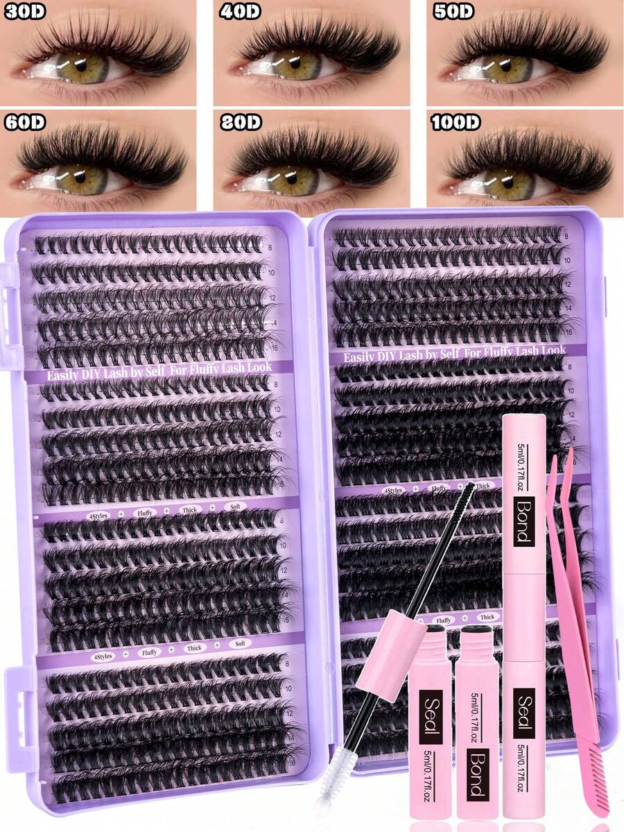 800 pezzi Kit per estensioni ciglie, Kit fai-da-te per estensioni ciglie, Kit di ciuffetti di ciglie individuali a forma di D, con colla e sigillante e applicatore, kit di ciglie adatto per uso quotidiano, adatto per viaggi, uso quotidiano per principianti, matrimoni, appuntamenti, feste, festival, molto adatto per pacchetti di ciglie di Natale/Ognissanti/regalo