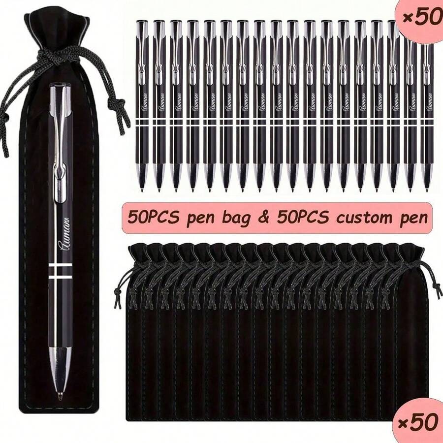 Penne a sfera di lusso personalizzate in metallo e alluminio con astuccio in pelle nera - strumenti di scrittura personalizzati per nome e sito web aziendale, regalo perfetto per uomini, anniversari, compleanni, regali di laurea