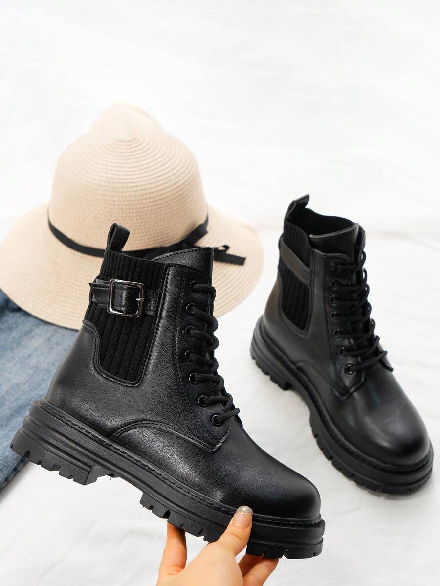 Stivali bianchi retrò di moda per donne, autunno/inverno 2025, stivali neri con tacco spesso, stivali corti da motociclista con suola platform chunky, stile da strada
