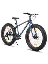 Hiland Roon 24/26 Pollici Grasso Pneumatico Mountain Bike per Adolescenti e Adulti, MTB con Shimano 7 Velocità, Doppio Disco Freno, Spiaggia E Neve Bicicletta (Verde, Blu, Bianco e Argento)