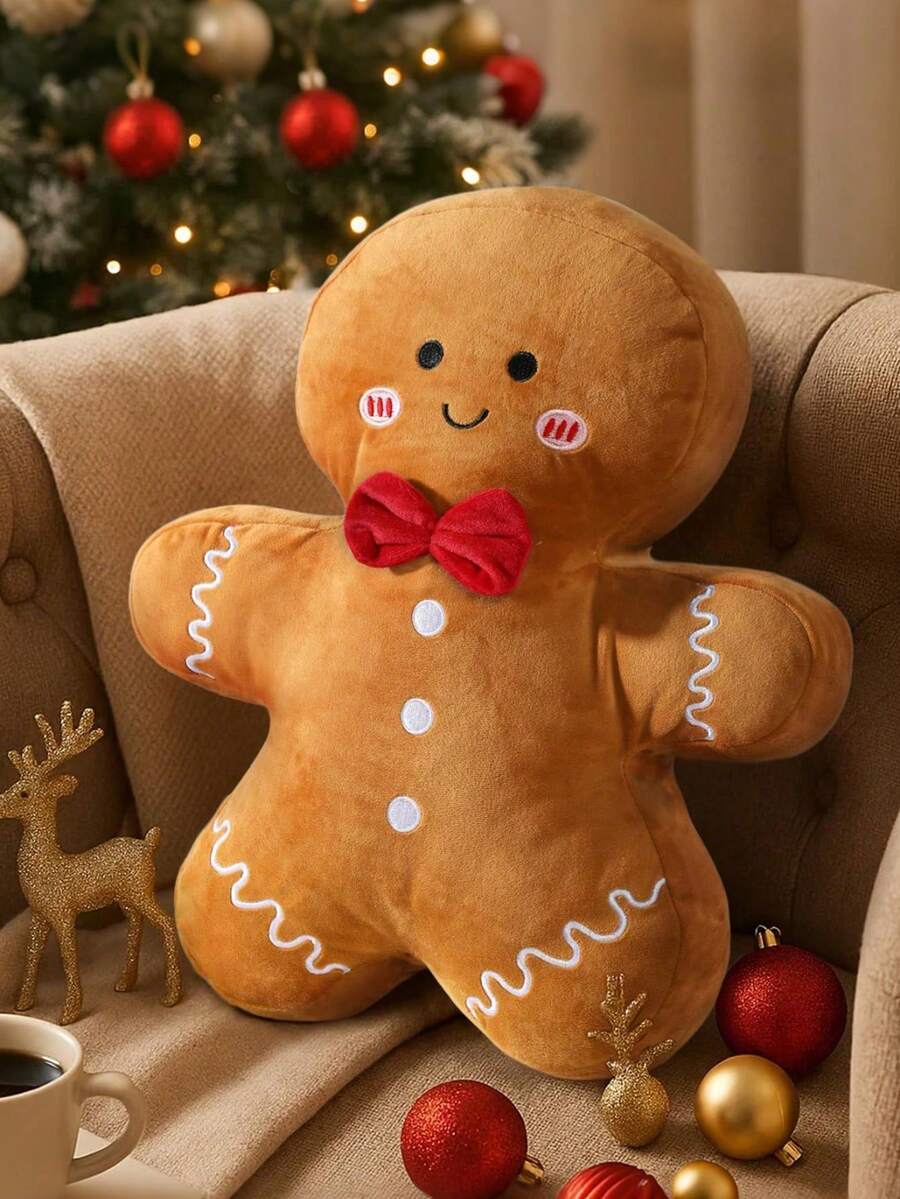 Cuscino natalizio a forma di omino di pan di zenzero, cuscino natalizio a forma di albero di Natale, cuscino imbottito a forma natalizia, adatto per decorare divani e letti di casa, decorazione natalizia carina a forma di omino di pan di zenzero, adatto per uso quotidiano, feste, Natale e altro.