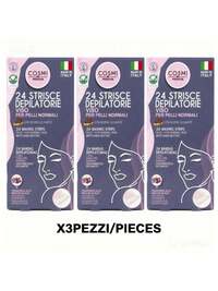 COSMI MILANO MADE IN ITALY CONFEZIONE DA 3 STRISCE DEPILAZIONE 24 PEZZI PER VISO CON BURRO DI KARITÉ, OLIO DI ARGAN E VITAMINA E. CON FRAGRANZA ALLE BACCHE DI AÇAI.3 PEZZI