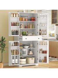 Mobili da cucina, mobiletto portaoggetti con piano di lavoro e 4 ante, cucina, mobiletto laterale multifunzionale, portaoggetti con illuminazione, credenza, ripiani regolabili, per cucina, sala da pranzo, credenza, buffet da cucina, mobili da cucina, mobiletto multiuso, vetrina, mobiletto da cucina, 70 x 40 x 180 cm