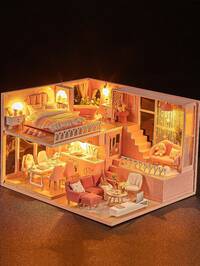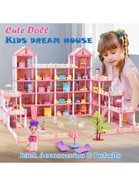 Casa di villa romantica rosa per principessa, bambine, giocattolo casa delle bambole, gioco di assemblaggio fai-da-te castello modello, casa da gioco per bambine, 3/6/7/14/19 stanze interne con bambole e mobili, balcone, decorazione con luci a LED, multi-strato e multi-stile, con vari accessori, assemblaggio gratuito, un piccolo regalo per la sorpresa delle feste delle bambine!