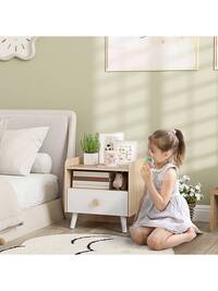 Aiyaplay Comodino con Cassetto per Bambini 3-10 Anni dal Design Minimal, Comodino per Camera da Letto in MDF e Legno di Pino, 40x32.5x40 cm, Bianco