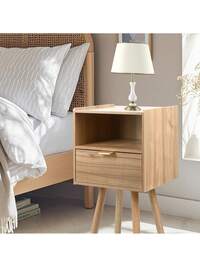 Comodino con cassetto e vano portaoggetti aperto, comodino per camera da letto, mobili per camera da letto 40 x 30 x 66 cm in stile scandinavo