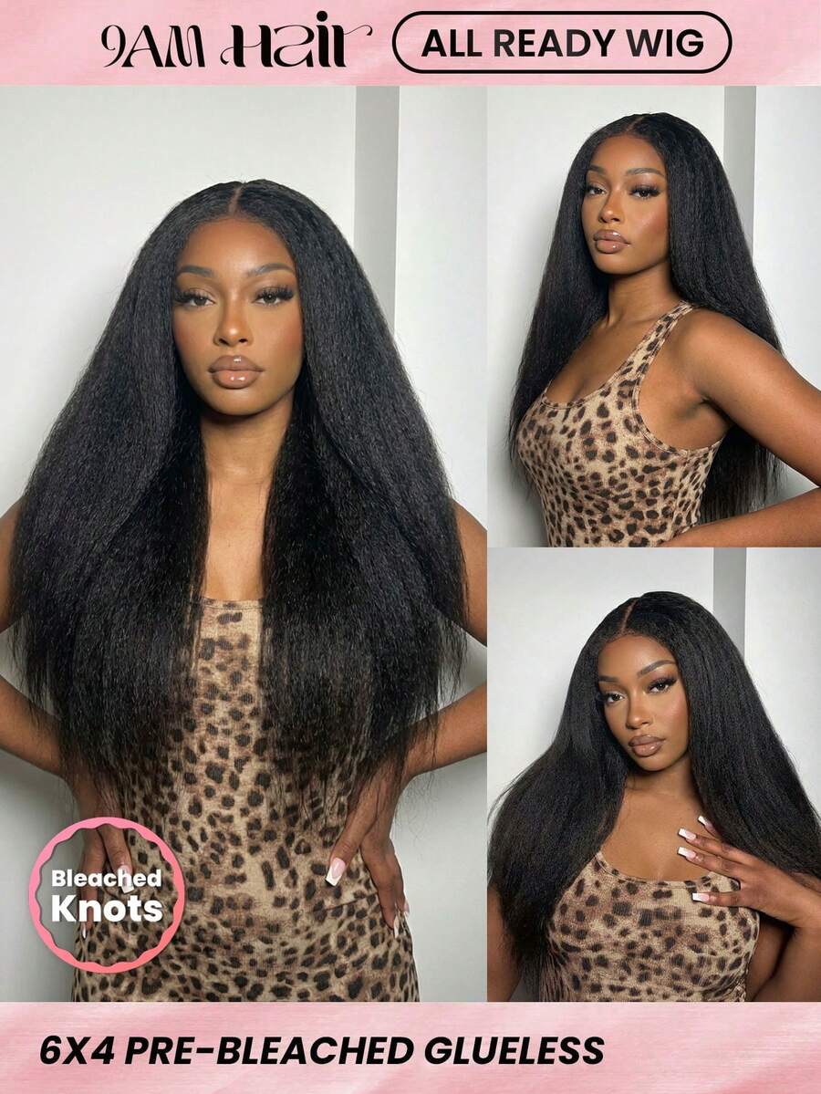 ALL READY WIG Parrucca lunga riccioluta e dritta, già pronta, con merletto pre-sbiancato, pre-strappato e pre-tagliato, con merletto che si fonde, parrucca frontale con chiusura senza colla 6x4, parrucca in veri capelli umani 9AM HAIR