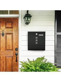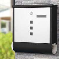 SONGMICS Cassetta Postale, Cassetta Posta, Serratura con Cilindro in Rame e Copertura Girevole, Finestre, Targhetta, Portagiornali, Facile da Montare, 10 x 30,8 x 33,8 cm, Nero