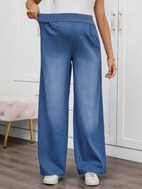 SHEIN MaternitySHEIN Jeans premaman a vita elastica, ampi, in colore unito, con tasche, versatili, adatti per primavera-estate, San Valentino, carnevale, pendolarismo, vacanze, laurea, stile Y2K carino, feste, matrimoni, eleganti e casual, comodi, taglie comode, in misto cotone traspirante e vestibilità morbida per donne in gravidanza