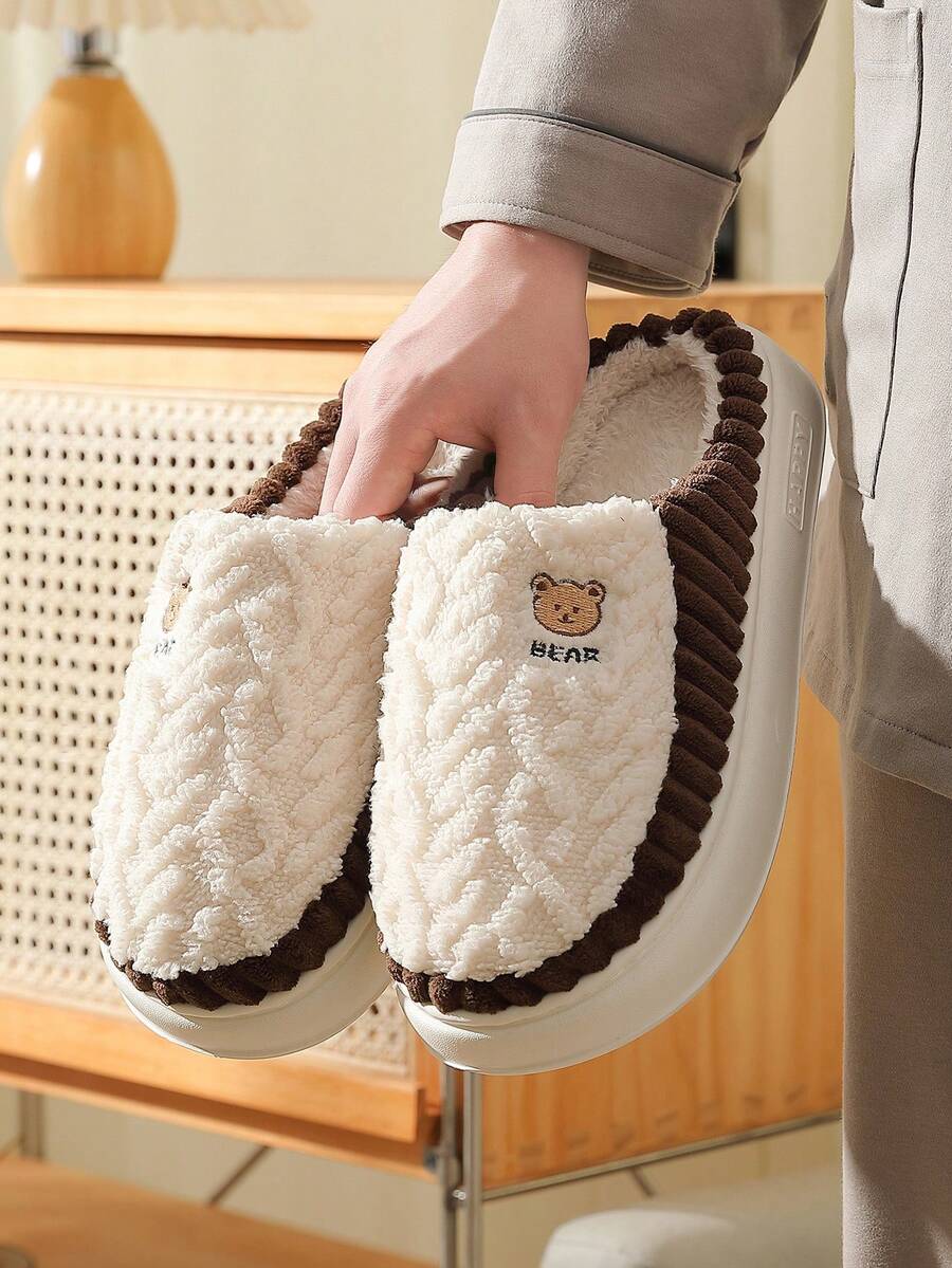 Pantofole invernali/autunnali da uomo in pile antiscivolo, pantofole da camera divertenti con toppe a forma di orso, suola spessa, pantofole chiuse in EVA morbido e carino