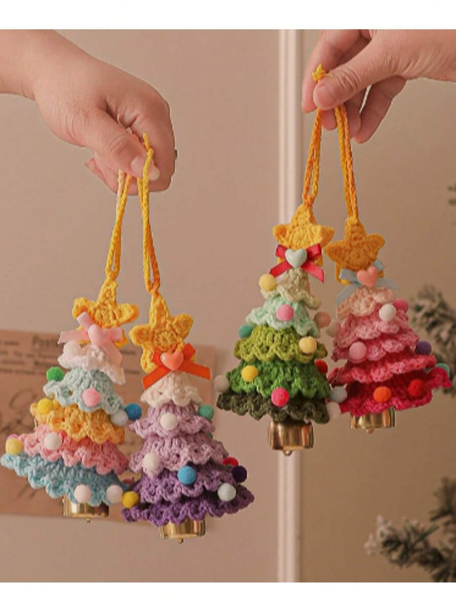 Accessori per auto con specchio appeso, albero di Natale, decorazione all'uncinetto a fiore fatta a mano per specchietto retrovisore, portachiavi a forma di albero di Natale
