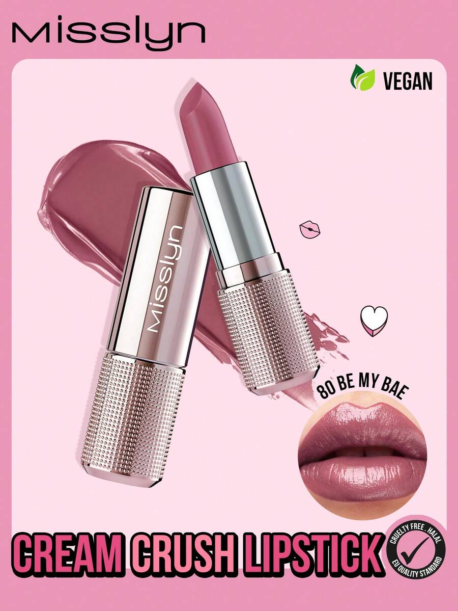 Misslyn Rossetto cremoso, rossetto idratante non appiccicoso, rossetto satinato idratante, rossetto nude ad alta lucentezza e intensità, adatto per il trucco Y2K, feste, spiaggia, viaggi, vacanze, campeggio, all'aperto, regalo, rosa, ragazza alla moda, cosmetici per il Capodanno cinese, per ruoli, migliore per viaggi e vacanze, colorato, campus, scuola, fascino, San Valentino, vegano, senza crudeltà, Ognissanti, zucca, dolcetto o scherzetto, 31 ottobre, fantasma