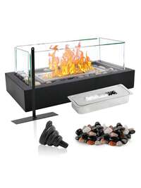 Riscaldatore decorativo per camino con fiamma ardente, canna fumaria in vetro cilindrica decorativa, adatto per tavoli da barbecue, riunioni familiari, regali di compleanno, matrimoni, eventi, bar all'aperto, caffè, campeggio, ristoranti, camere da letto, Natale e altro ancora Stock UE