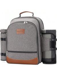 Zaino da picnic HappyPicnic isolato per 4 persone con set di posate completo, spaziosa sezione refrigerata, portabottiglie e grande telo da picnic impermeabile