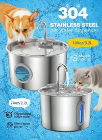 PETSINPETSIN 2,2L/74oz, 3,2L/108oz Fontana d'acqua per gatti, Fontana d'acqua automatica in acciaio inossidabile per animali domestici, adatta per gatti e cani, Ciotola per acqua per gatti e cani in metallo, con finestra del livello dell'acqua, pompa ultra silenziosa, Fontana d'acqua per animali domestici, Distributore di acqua silenzioso, Fontana d'acqua per gatti, Facile da pulire e installare, Bellissimo design del rubinetto, Eccellente sistema di filtrazione #4 Bestseller
