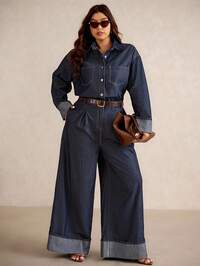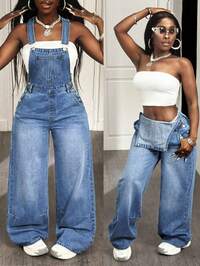 SHEIN PETITE CURVESHEIN PETITE CURVE Tuta da donna oversize con bottoni, tasche e gamba ampia, casual e comoda, in jeans blu scuro, adatta per uso quotidiano, con tasche funzionali e design classico, ideale per inverno, Natale, Capodanno, Ringraziamento, pendolarismo, vacanze, laurea, stile chic Y2K, casual elegante, festa, matrimonio, affari, donna. #2 Bestseller