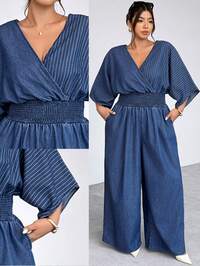 SHEIN MOD CURVESHEIN MOD Tuta in jeans blu taglie forti, comoda vestibilità skinny, tutina casual, abbigliamento estivo da donna taglie forti, tute estive da donna, tute per laurea, tutine da donna, tute da donna, tute in jeans, outfit da cowgirl per donna, outfit da vacanza per donna, casual business per donna, outfit per compleanni da donna, outfit per concerti country