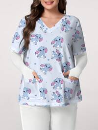 PopScrub Camicie uniforme donna taglie forti con scollo a V, maniche corte, due tasche, con stampa carina, cartoni animati, graffiti, disegni minimalisti, multicolore, adatte per infermiere, medici, esami, groomer per animali, nutrizionisti, laboratori, camicie da lavoro funzionali con tasche multiple #3 Bestseller