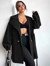 EMERY ROSE CURVEEMERY ROSE Giacca a vento casual versatile da donna taglia comoda, elegante e romantica, colore kaki con tasche, adatta per autunno/inverno, rientro a scuola, laurea, vacanze, San Valentino, festival musicali, festa della mamma, Ognissanti, Ringraziamento, Pasqua, Festa nazionale, gala, appuntamenti, feste, attività all'aperto