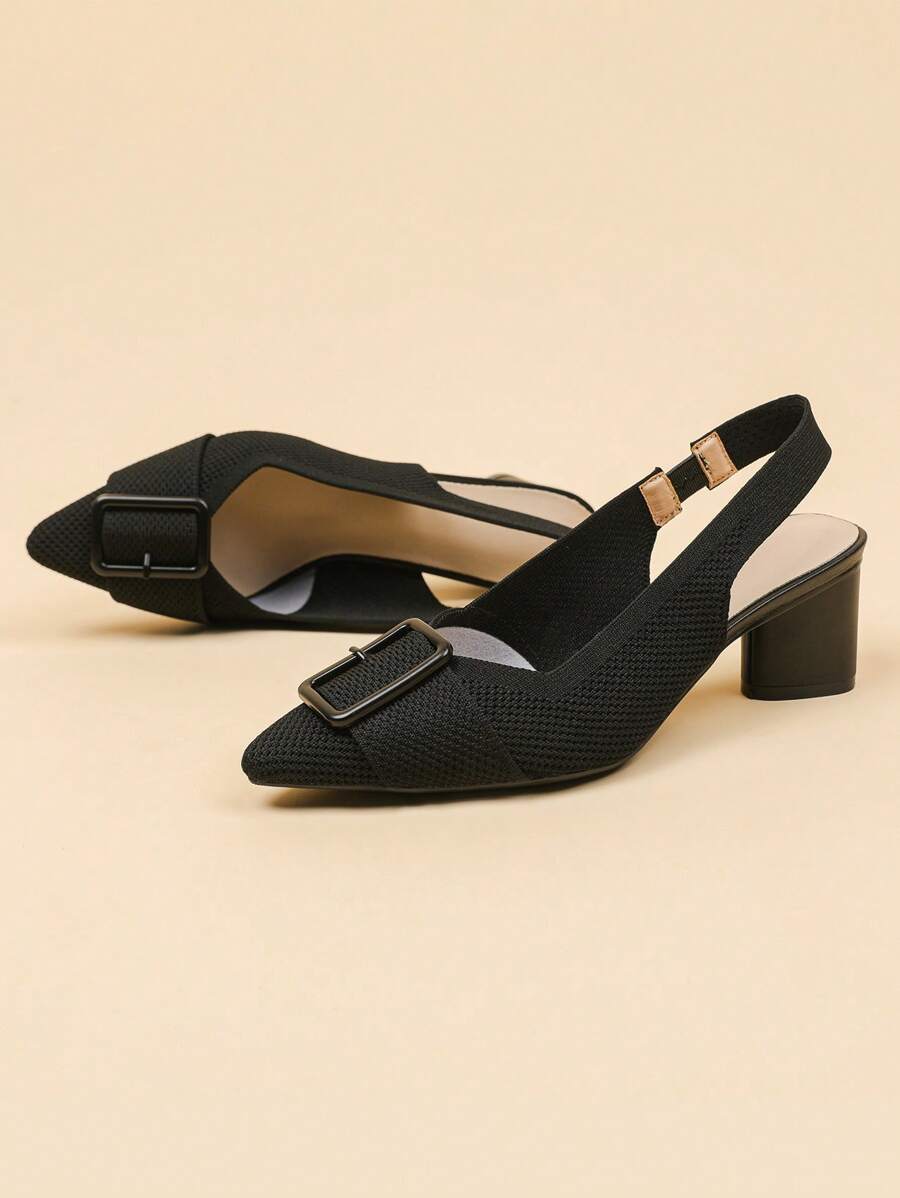 Sandali con tacco alto casual in tessuto traspirante da donna taglie forti, con fibbia e cinturino, punta affusolata e tacco largo di colore solido