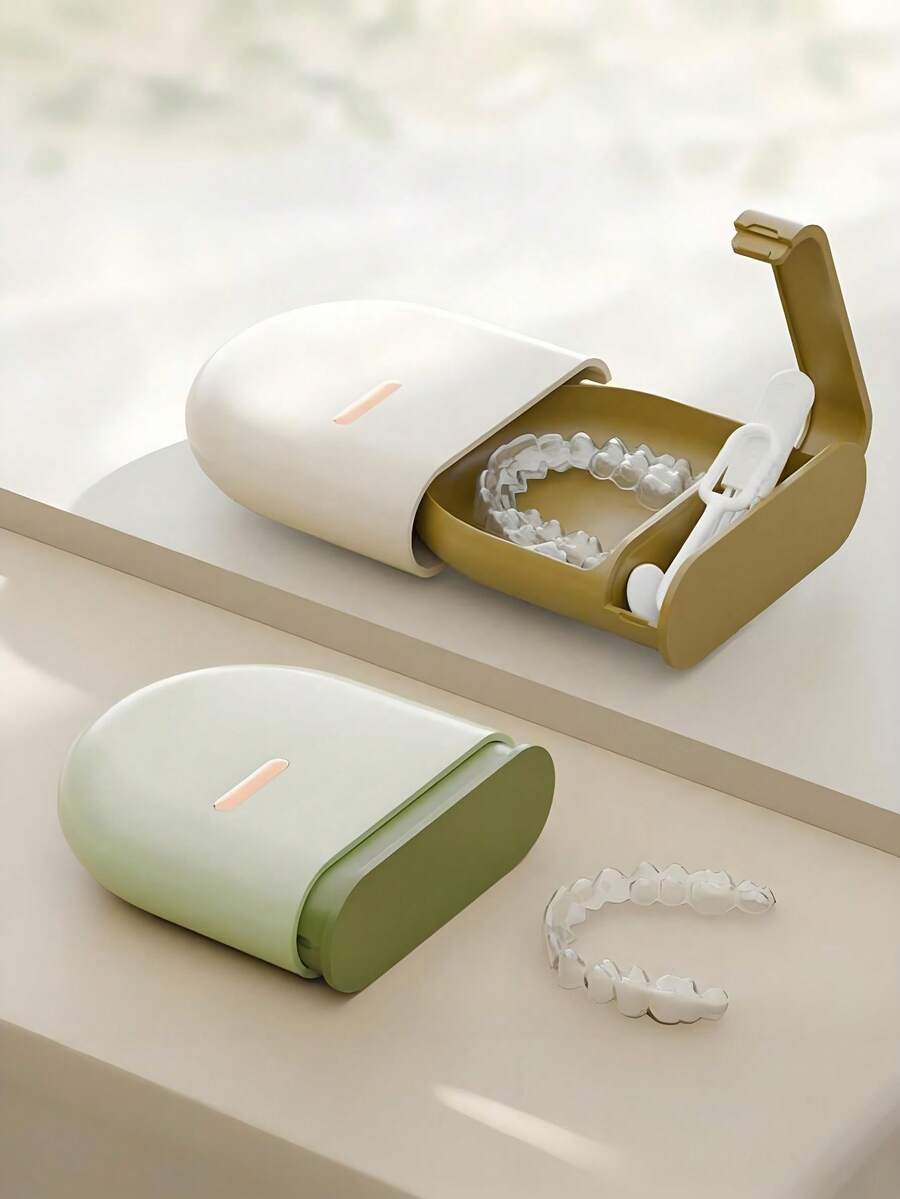 Contenitore portatile e invisibile per apparecchi ortodontici, retainer per denti sigillati, scatola per conservazione di apparecchi ortodontici (senza spazzola per la pulizia), contenitore per apparecchi dentali, scatola per conservare bracket, senza batterie richieste, design compatto, adatto per uso domestico e da viaggio