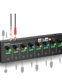 socodox Amplifier de casque à 4 canaux with pinches RCA 3.5 mm/6.35 mm, mélangeur Compact en metal with 8 ports de sortie pour casque, Interrupteur stéréo, Fonction muet, lumière RVB (8 canaux)