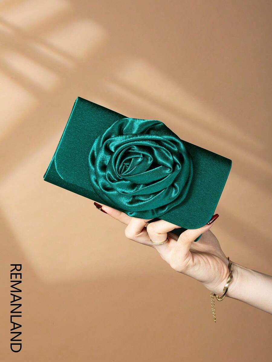 REMANLAND Borsa da sera a forma di rosa per donna, pochette, borsetta da donna con fiore di rosa, borsetta in raso, borsa da sera per matrimonio e feste, regalo originale