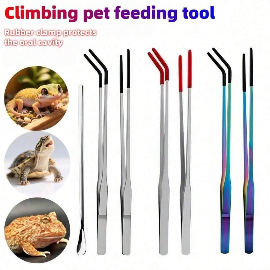 Set di attrezzi in acciaio inossidabile per l'alimentazione di rettili, con testa in gomma - Pinzette per rettili striscianti, adatte per lucertole, lucertole dalla criniera, geco, rane, criceti, tartarughe, pesci, conigli, distributori d'acqua per conigli, mangiatoie, cucchiai per l'alimentazione delicata della bocca, accessori per animali striscianti